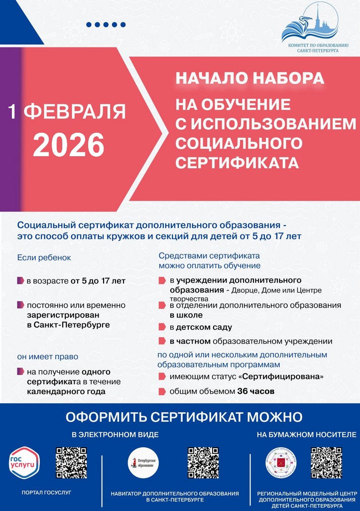 Также вы можете воспользоваться записью на портале дополнительного образования Санкт-Петербурга "Навигатор" по ссылке